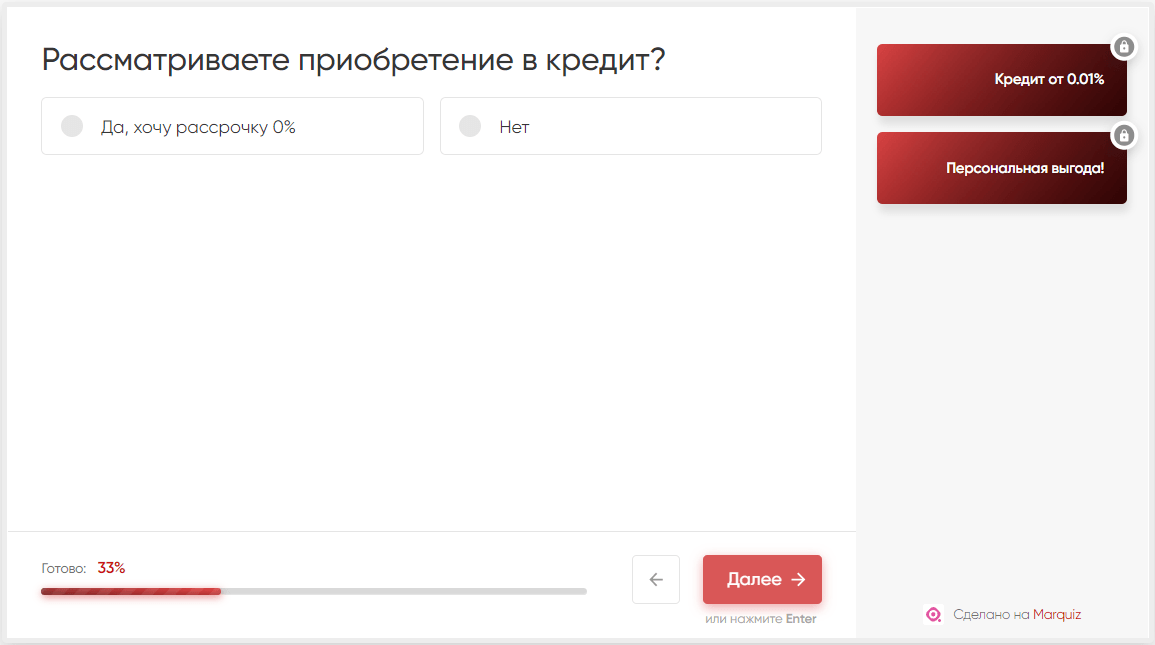 Мы увеличили долю бюджета на «квизовые» рекламные кампании, отметив их более высокую эффективность.