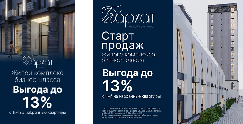 Каналы для посевов выбирали также тематические, ориентируясь в первую очередь на приемлемую стоимость размещения, отсутствие накруток, показатель ER и динамику охватов. Для размещения использовали баннеры с визуалами ЖК — фасады, общественные зоны, благоустройство. Тест принес достаточно высокие охваты, но низкий трафик на сайт и всего 1 лид, поэтому также был признан неуспешным.