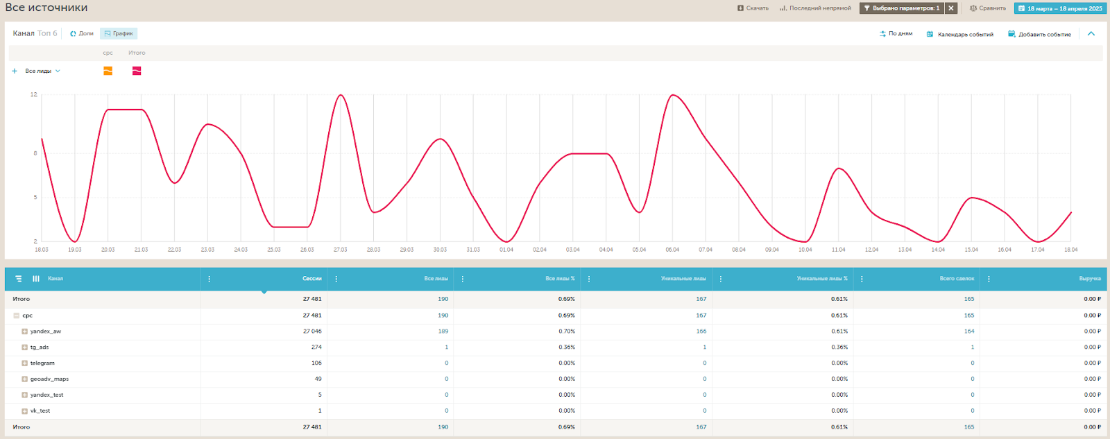 Дополнительно для оптимизации рекламных кампаний использовались отчеты Яндекс Директа и Яндекс Метрики. Показатели мы анализировали ежедневно: смотрели, какие каналы дают клики, как ведут себя пользователи на посадке, кто доходит до финального шага.