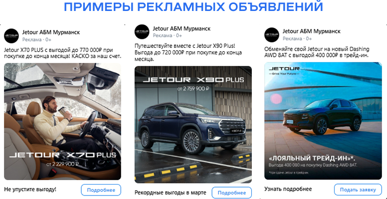 В первую очередь, важно было подготовить креативы. Наш опыт показывает, что «живые» фотографии, сделанные в дилерском центре, отрабатывают более эффективно, чем стоковые изображения автомобилей. Они вызывают большее доверие и интерес аудитории.