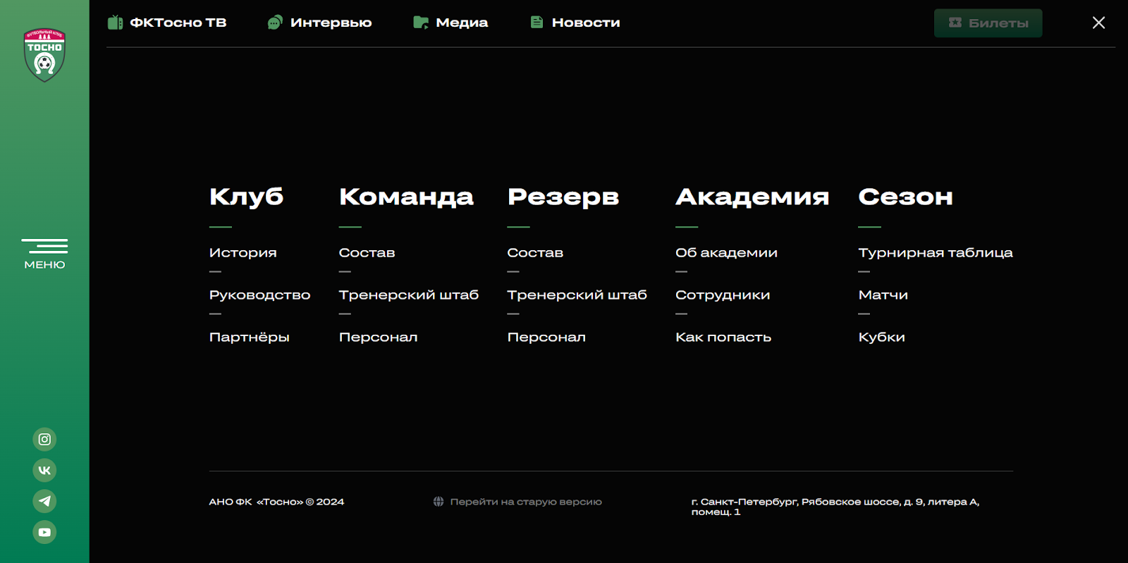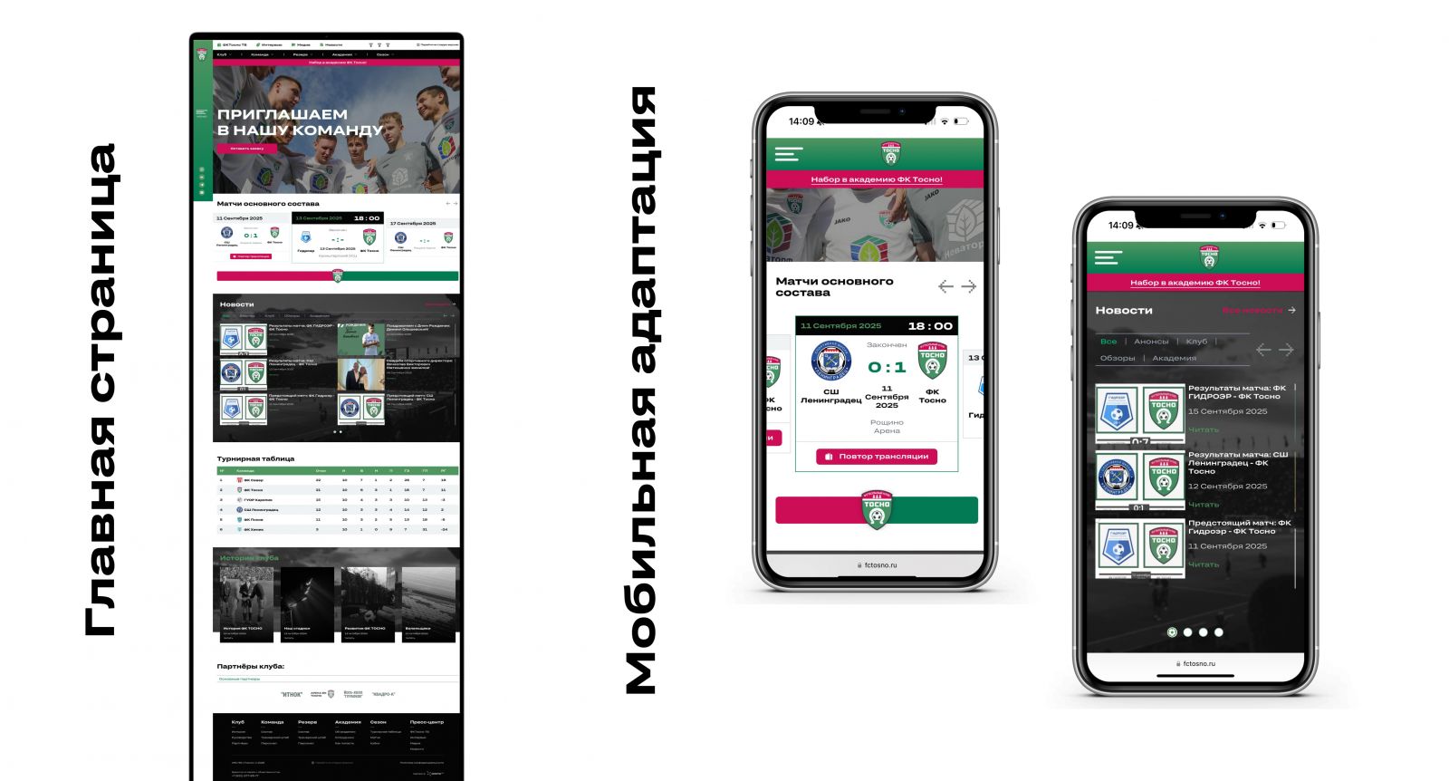 Общую структуру выстроили по стандартной модели для футбольных клубов: новости, календарь матчей, команда, академия, история клуба и медиаматериалы.