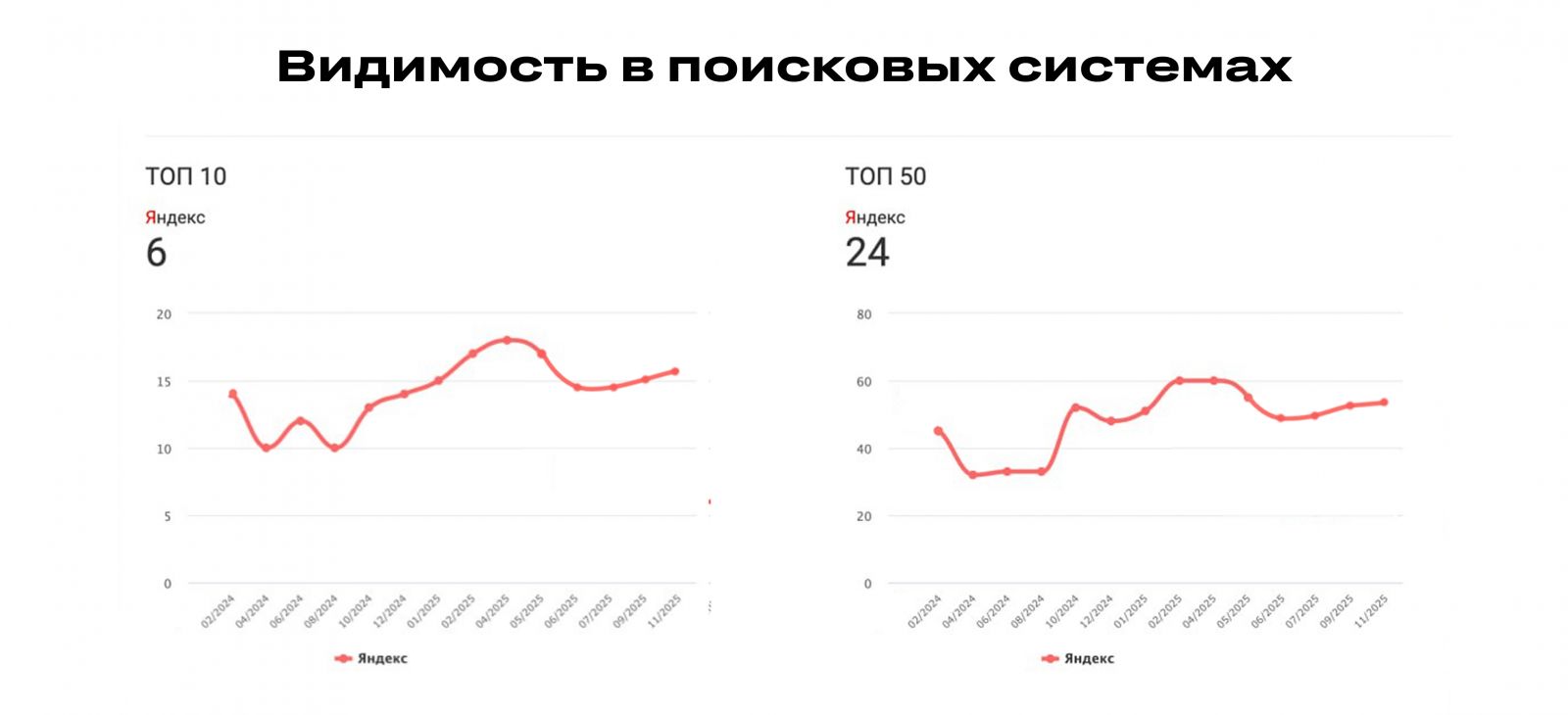 Сайт финально запустили в работу в январе 2025 года. С этого момента мы отметили ускорение работы сайта в 4 раза и резкое повышение видимости домена в поисковых системах.