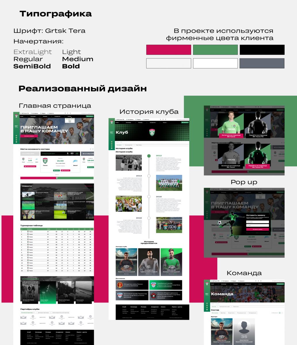 — редизайн текущего сайта — постраничная переверстка с улучшением структуры меню, акцентом на предстоящих матчах, унификацией карточек игроков, добавлением истории клуба и современных форм обратной связи. Такой вариант позволил бы обновить ресурс постепенно, сохраняя существующую базу.