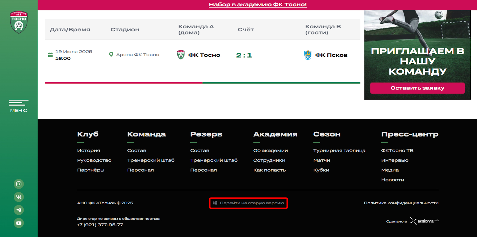 — расширить структуру сайта за счёт новых разделов: «Академия» и «История клуба», усиливающих вовлечённость и формирующие лояльность болельщиков.