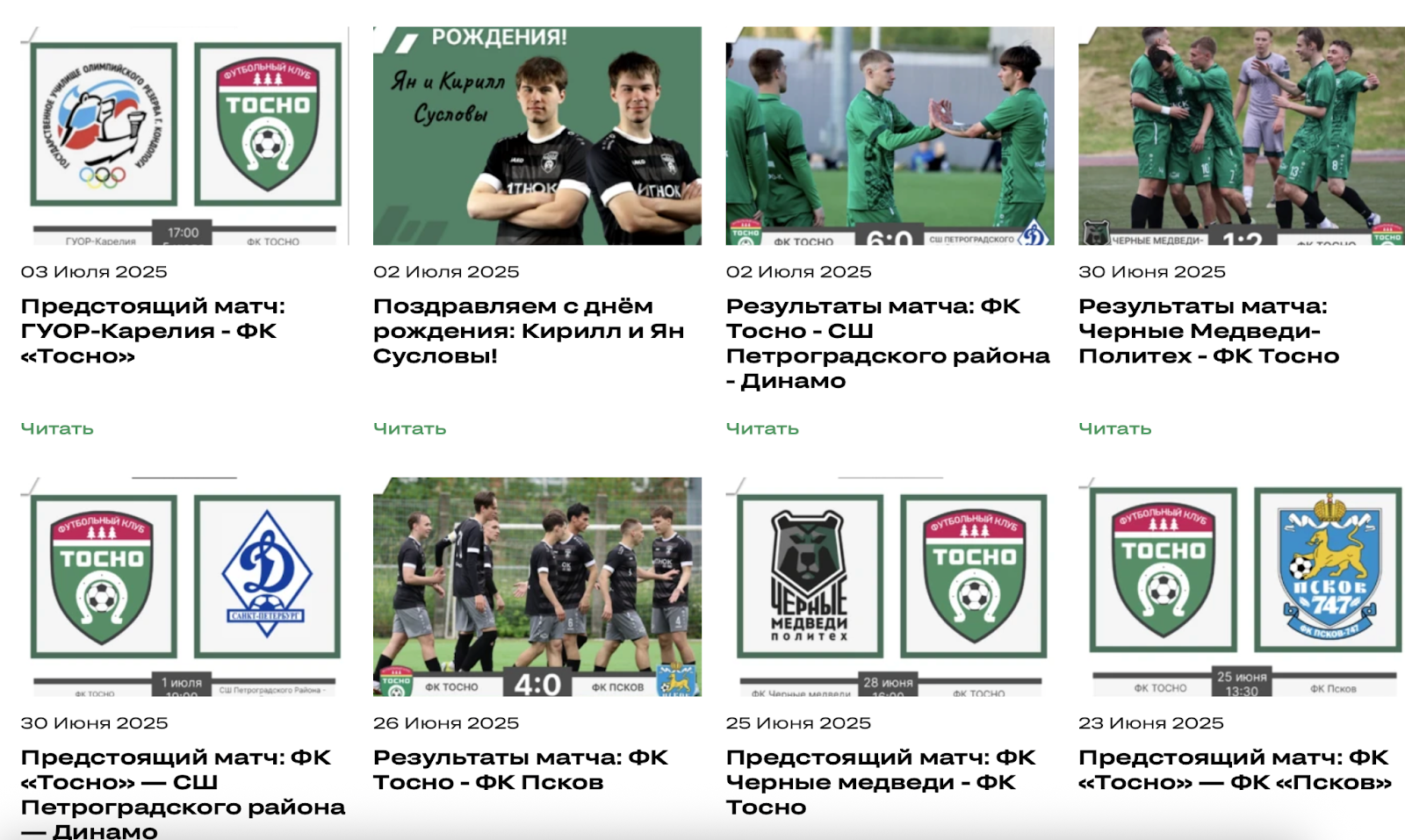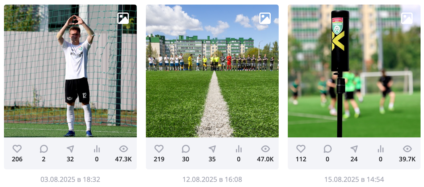 Контент создавали совместно: клиент публиковал информацию о матчах, мы отвечали за развлекательные материалы. В текстах активно использовали эмодзи для поддержания атмосферы неформального дружеского общения. Все команды клуба в постах представлялись единым целым — без разделения на областные и городские, основные и второстепенные. Такой подход поддерживал ключевой девиз клуба: «Вместе мы Тосно».