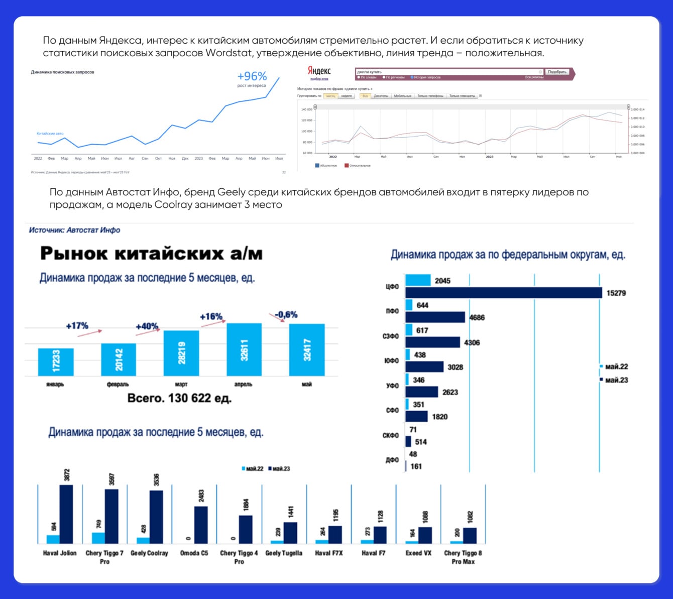 При этом данные Wordstat и Автостата демонстрировали стабильный рост как по ключевым запросам и категориям интересов, так и по продажам автомобилей китайских производителей.